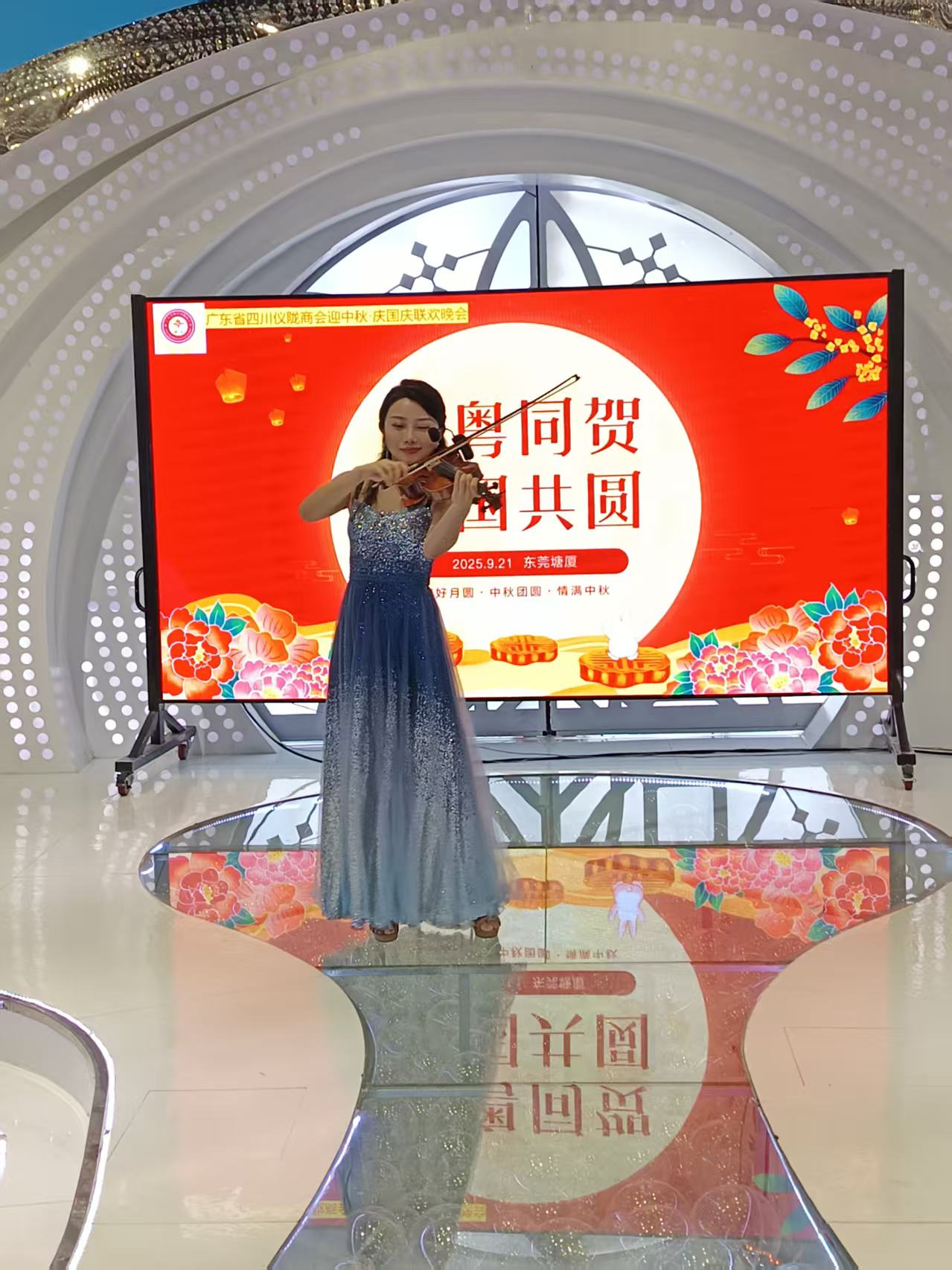 文艺表演环节精彩纷呈,歌曲、笛子独奏、小提琴演奏等节目轮番上演,赢得阵阵掌声与喝彩,既以赤热真情向中秋国庆献礼,又展现了四川仪陇人多才多艺、团结向上的精神风貌。其中,商会文娱部部长张书科带来的笛子独奏《姑苏行》,用悠扬的笛声勾勒出“明月松间照”江南水墨画般的诗意画卷;欣赏小提琴演奏,能感觉琴声像月光穿过指缝流淌在会员们心间;震撼的摇滚音乐,用炸裂的鼓点、嘶吼的人声,让人在团圆时刻也可以很狂野地放飞心情。