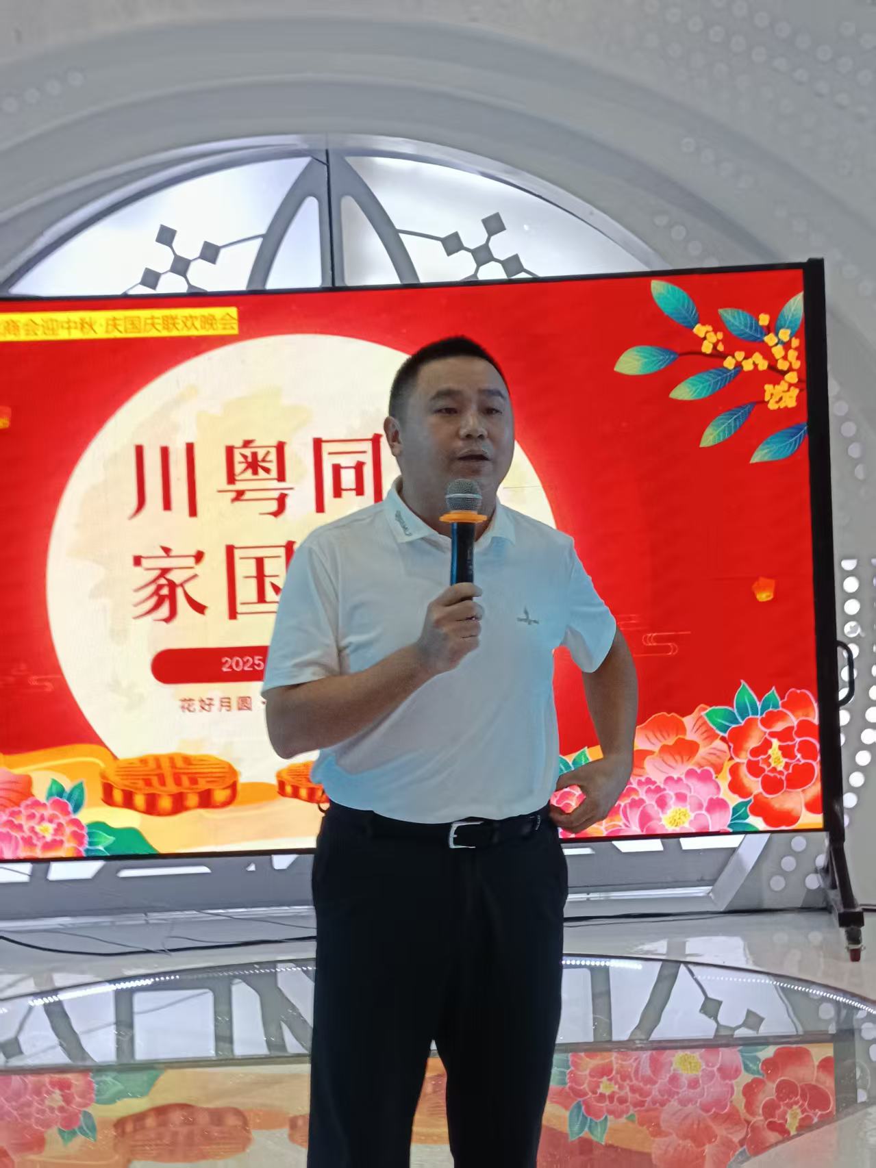 景杰会长在晚会上发表了热情洋溢的中秋致辞。他首先对在各自的领域内勤奋耕耘,不仅为广东的经济社会发展贡献了重要力量,同时又积极反哺家乡,为四川仪陇的繁荣进步添砖加瓦的商会成员们表示衷心的感谢,并强调广东省四川仪陇商会取得的每一点进步,都离不开全体会员的共同努力和无私奉献,正是有了大家的支持与付出,商会才得以不断发展壮大,成为我们在粤仪陇人共同的精神家园和坚强后盾;他鼓励成功企业家返乡创业,把先进的技术、管理和理念带回家乡,支持仪陇产业升级和经济发展。景会长表示,商会将继续发挥桥梁纽带作用,整合资源优势,助力会员企业发展,并呼吁以乡音为号、商机为媒,共同谱写商会发展新篇章,为促进川粤两地经济文化交流、推动仪陇家乡建设作出新的贡献!
