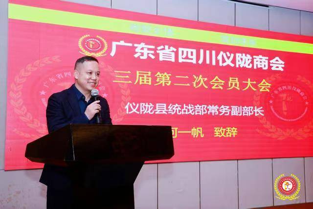 仪陇县委统战部常务副部长何一帆受邀发言。他对商会企业家们情系桑梓、反哺家乡的情怀给予高度评价,肯定了商会在联结粤仪两地、促进资源互通中的重要作用。他鼓励企业家们继续发挥自身优势,将广东的先进理念、资源与家乡机遇对接,带动仪陇产业发展与民生改善,县委县政府将全力做好服务保障,祝愿商会越办越好,企业家们事业兴旺。