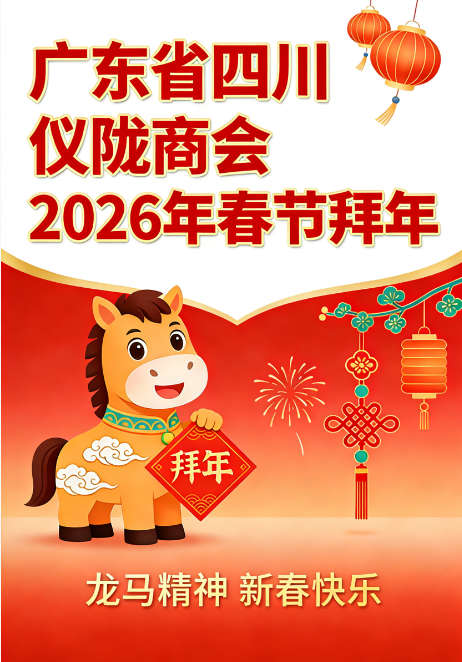 值此2026丙午马年新春,广东省四川仪陇商会全体同仁,向所有关心支持商会发展的各级领导、各界朋友,向仪陇桑梓父老,向在粤仪陇籍乡贤与企业家,致以新春最热烈的祝福!