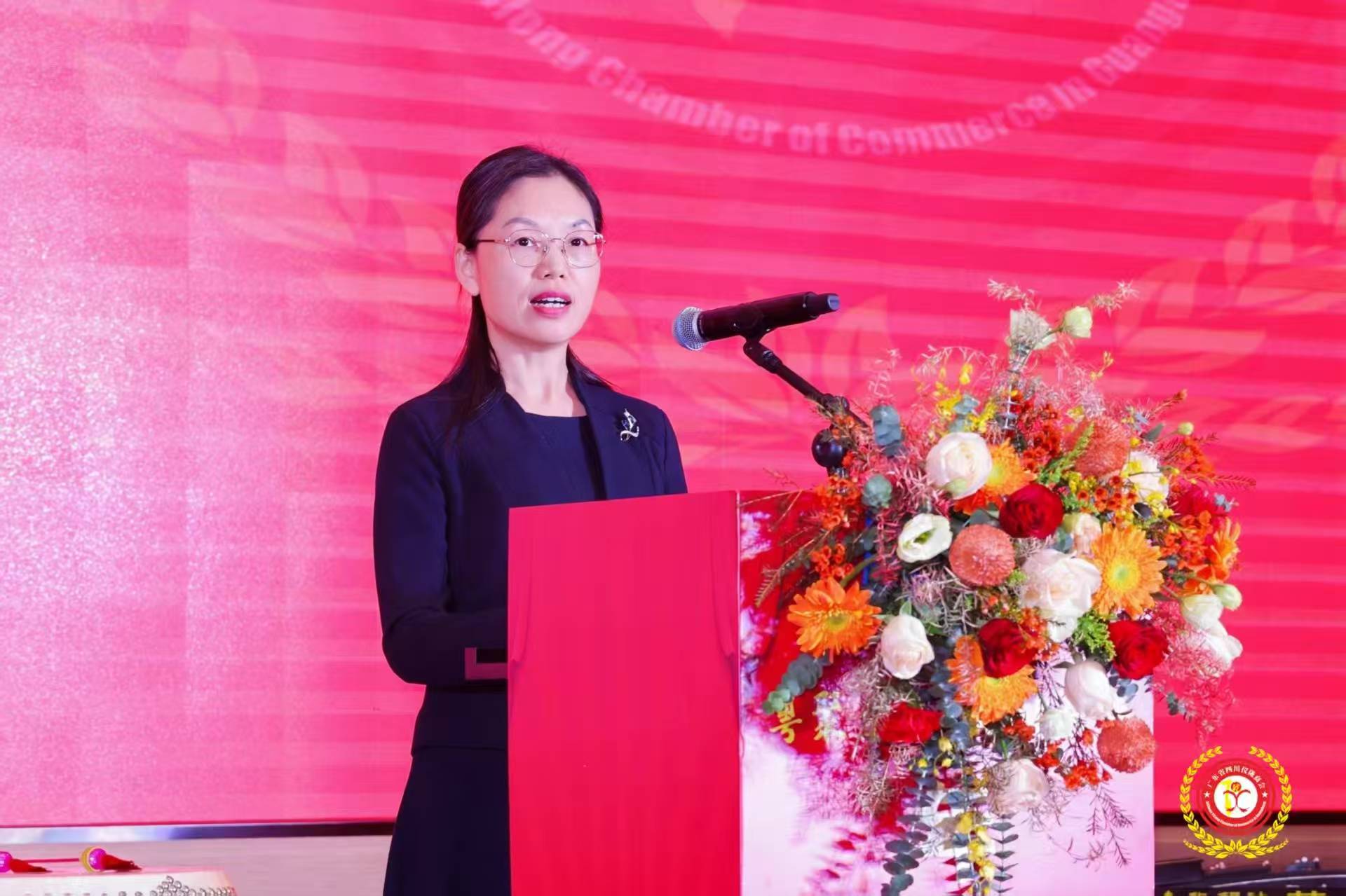 南充市人民政府驻广东办事处主任廖菊华也对商会十一周年华诞及会员代表大会的圆满召开表示热烈祝贺,盛赞商会既是乡友们在外的温暖港湾,也是政企沟通的坚实桥梁。她用“魅力无限、活力迸发、潜力十足”三个关键词概括家乡南充,详细介绍了南充作为成渝地区北部中心城市,拥有超2200年建城史,坐拥朱德故里、阆中古城两大5A级景区,交通枢纽优势显著,产业承载平台完备,2025年前三季度GDP达2169.06亿元,位列全省第五。她强调,南充历史文化底蕴深厚、区位交通便利、产业基础坚实,呼吁在粤乡贤当好家乡的推荐人、带动者、监督员和娘家人,在政企同心、乡情联结的助力下,积极返乡投资兴业,与家乡携手共进,共同助力南充重点产业发展,打赢经济发展翻身仗。