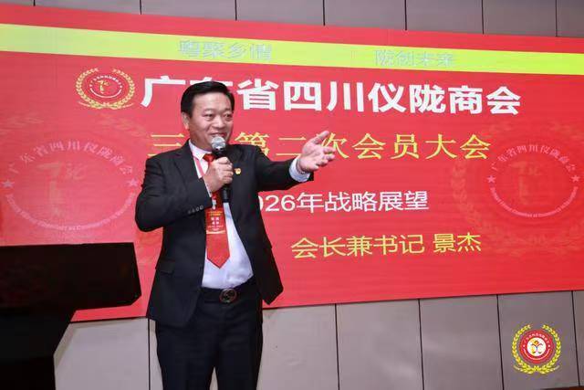 2026年1月11日,广东省四川仪陇商会第三届第二次会员大会暨资源对接会在深圳龙岗区雅邦朗悦国际酒店隆重举行。仪陇县委统战部常务副部长何一帆、县工商联主席佘玮,商会创会会长刘治浩、名誉会长熊仕明、会长景杰、轮值会长杨炳强、理事长章钰宗、监事长刘炳平、秘书长陈涛等150余位嘉宾与会员齐聚一堂,共叙乡情纽带,共商发展大计,共绘合作蓝图。